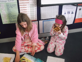 On Tuesday we had Buddy Class with Kakapo. We got to wear our PJs to school and had toast and milk with our big buddies while we read.